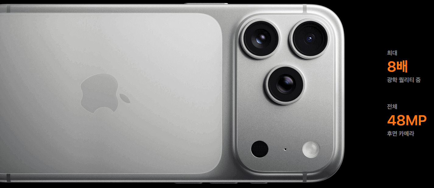 - 카메라: 48MP 트리플 카메라(메인·울트라와이드·신형 망원), 100mm 4배, 200mm 8배(광학급) 줌 지원