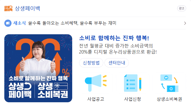 - 콜센터: 1533-2800 (상생페이백 콜센터)